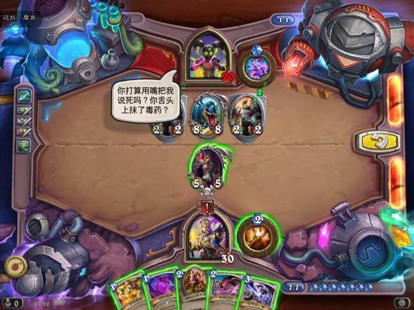 2-6狂暴吼爹,血法师,盾猛第一个,旋风斩,砍憎恶,踢脸!这一关卡还是有点难度的,我们就是想办法让喉爹踢脸!这样我们就赢了!这一关迷惑性卡牌众多需要动一些脑子才可以过!