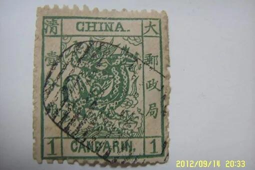 1878年,清朝时期,中国的邮政系统初创,五处海关设立邮政机构,准备发行邮票。而这枚邮票就是后来的大龙邮票,图案正中绘有一条五爪蟠龙,衬以云彩水浪,邮票的颜色和面值都有所差异。