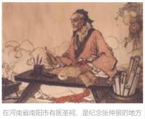 这些都与汉代“医圣”张仲景有关。张仲景名机,字仲景,相传他出生在南阳一个官宦家庭,从小笃实好学,在史书上看到名医扁鹊的故事后,便对医学发生了浓厚的兴趣。在东汉末年举孝廉的制度下,张仲景承袭家门,被州郡举荐,当上长沙太守。有一次,张仲景正在大堂上审理一起盗窃耕牛的案件。有一位衙役告诉他,外边有位母亲搀着儿子找他看病。张仲景一听,将案件审理停下,赶紧让衙役把病人请进来,要先给病人治病。母子二人进来后,发现病人是年轻的儿子,通过四诊法望闻问切,很快就开出药方。药方写完后,张仲景在药方的落款处就写上了“坐堂医生张仲景”,表明是在官衙的大堂之上进行诊治的。