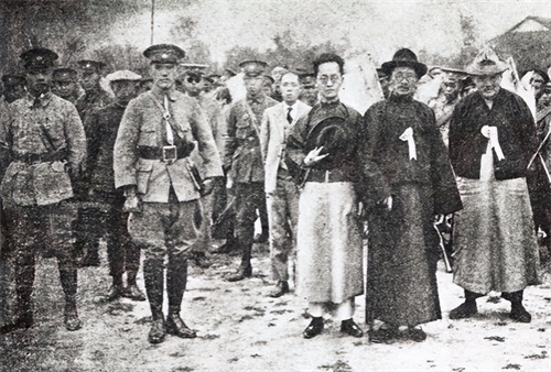 前排左二起分别为蒋介石、胡汉民、蔡元培、吴稚晖