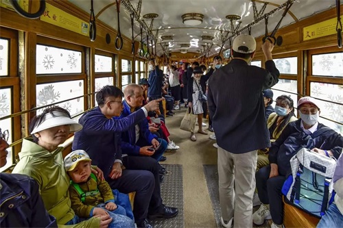 改造后的东关街与大连长江路201老电车形成互动,晋级网红打卡地,更加接地气!