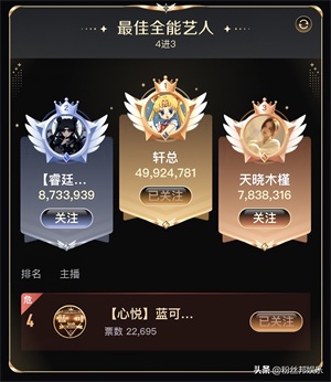 在分组赛中,兰梦莎以超越同组对手数倍的差距成功夺冠“最佳全能艺人”冠军,这阵势必然是奔着“TOP1”头衔去的。
