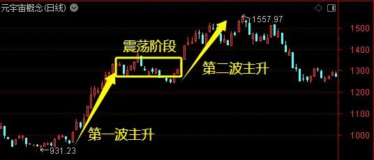 而上述元宇宙概念板块,其实之前还有一波行情,经历深度回调后才进入到上图中的第一波主升行情。