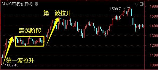 一是2023年的ChatGPT概念。2023年2月中旬,在主升了近半个月之后,ChatGPT概念开始进入为期一个月的震荡阶段,之后再度走出了一波上升行情。关注微信公众号“道达号”,获取更多股市资讯。