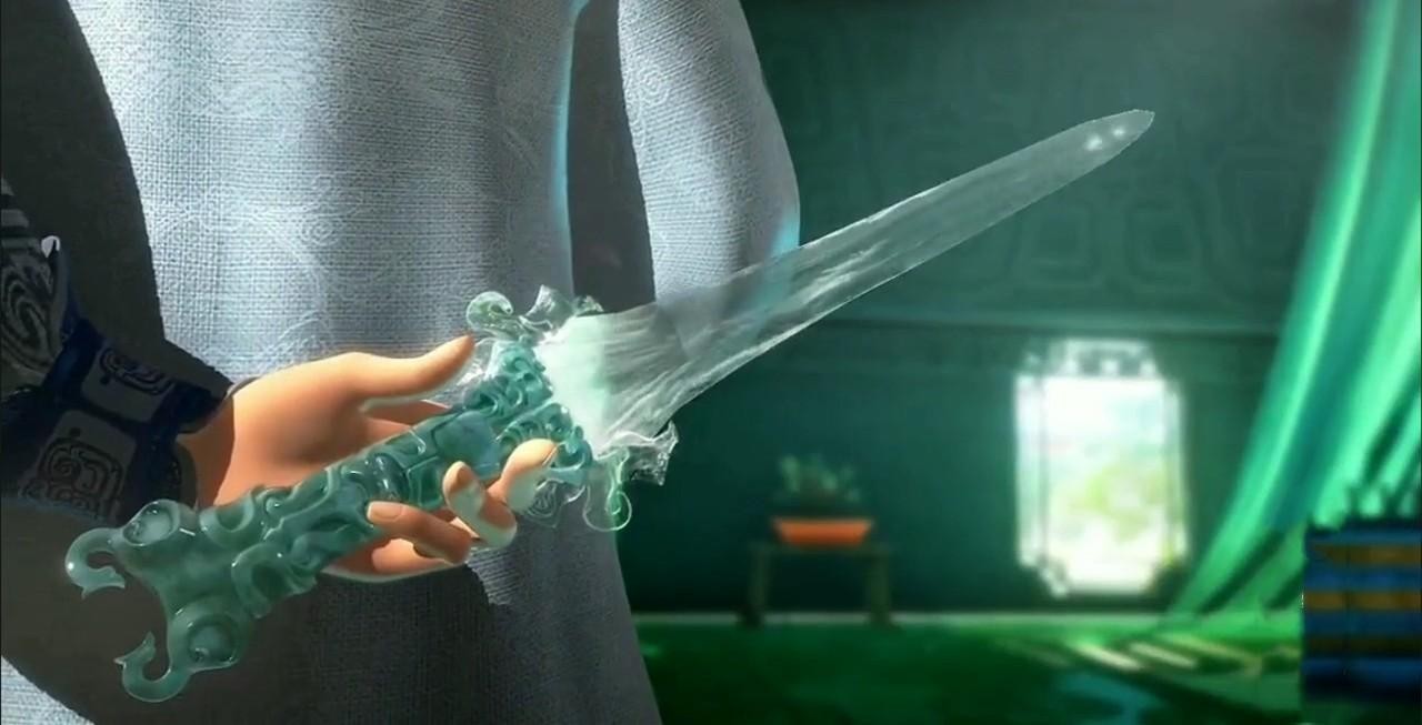 据说这把承影剑还有一个孪生剑,就是含光剑,而含光剑一直没有出现在世上,直到有一天,孔周发现刻在剑身上的铭文中“影“字有点松动,他按下去没什么反应,又向外拔就听到咔哒一声,剑柄分成了两截,孔周握住短小的那截剑柄,慢慢地向外拔,能感觉到一把剑被他拔了出来,却看不到剑身本体,用手一碰就把手割伤了,最后他发现只有阴暗处才能看到剑身,一旦有光照到剑身上便消失不见,而且这把剑的剑气十分犀利,用力向远处一挥,尽然把远处的墙壁穿透了!