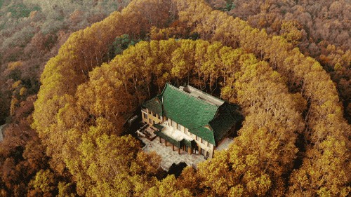 俯瞰整个紫金山,蓝绿色的琉璃熠熠生辉。