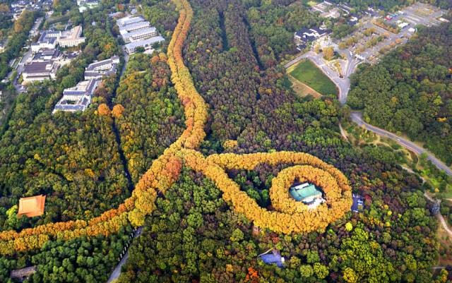 宋美龄的这一改,便直接有了日后酷似项链的形态。所以“紫金山之心”并不是蒋介石对宋美龄的浪漫表白,甚至连宋美龄自己可能也不会想到,当这条路被种上黄叶素含量较高的法国梧桐,几十年后会出现如此壮丽的景致。