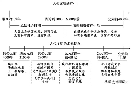 上一期新高三备考复习中,螺蛳君为大家总结了中国古代史各阶段特征及几大宏观主题规律。相较于中国古代史,世界古代史线索较分散,且内容繁杂,记忆起来有一定难度。今天螺蛳君就为大家初步总结、梳理世界古代史的几大宏观线索及专题规律。