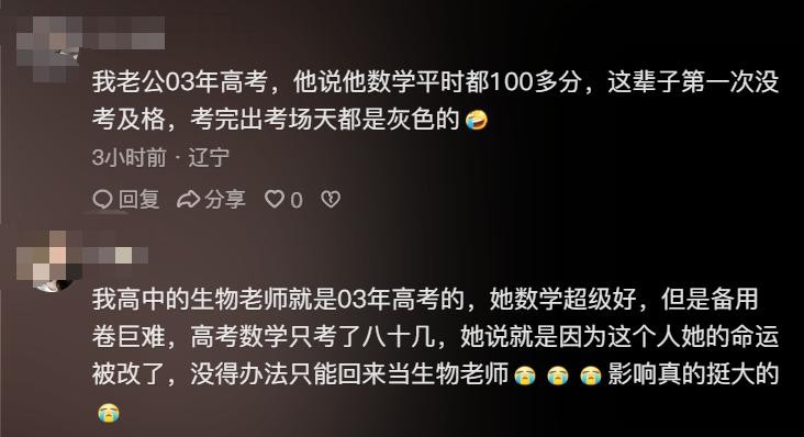 她说她妈是03年那届高考的
