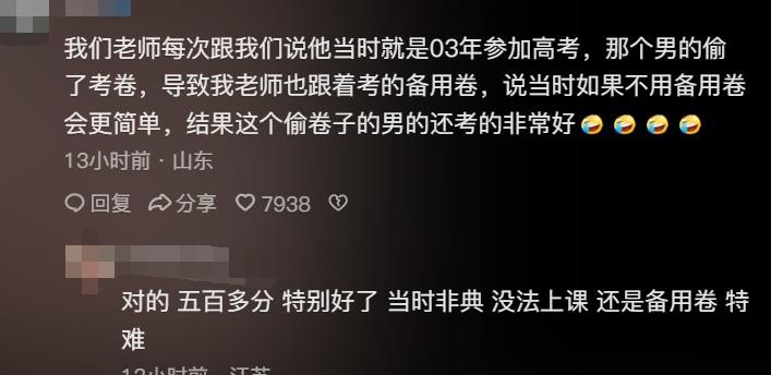 我同学他们到现在也都不能给我们说,他们当年备用卷写的是啥