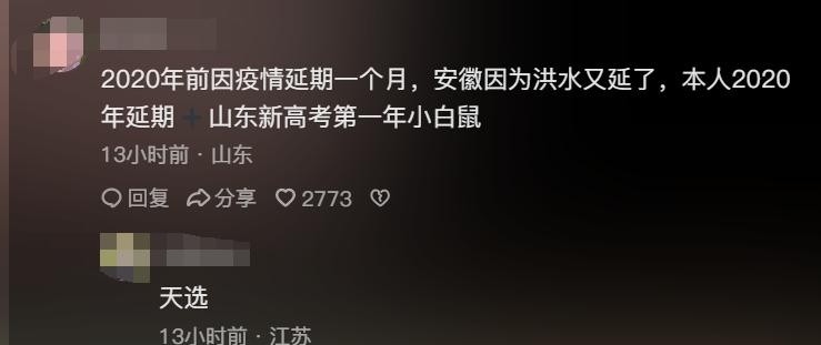 [宕机]延期一个月后,安徽因为洪水又延期了,考的备用卷