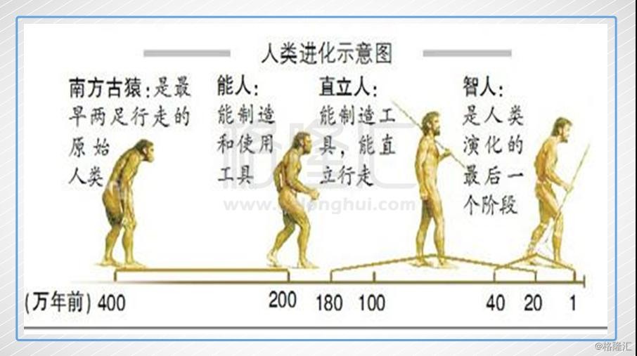 我们看到170万年前的旧石器早期的云南元谋人的出现,到70万年前蓝田人出现,50万年前旧石器中期北京人的出现。北京人开始使用火,是早期智人的出现。