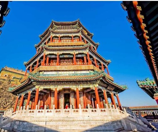 佛香阁是颐和园的建筑群体在万寿山上,非常的气派宏伟。佛香阁高41米建筑结构很复杂是古代建筑艺术中的精品。这个起源于佛教文化,曾经慈禧太后就在这里烧香拜佛。和腾王阁、蓬莱阁、玉皇阁并称为中国古代四大名阁。