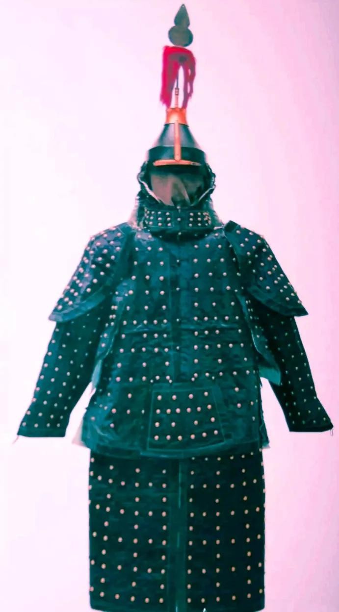盔甲是人类在武力冲突中保护身体的器具,也叫甲胄或铠甲。其中盔与胄都是指保护头部的防具,铠与甲是保护身体的防具,而主要是保护胸腹的重要脏器之用。从出土的实物来看,古代战甲多以犀牛,鲨鱼等皮革制成,上施彩绘。皮甲由甲身,甲袖和甲裙组成,甲片的编缀方法,横向均左片压右片,纵向均为下排压上排,胄是用十八片甲片编缀起来的。