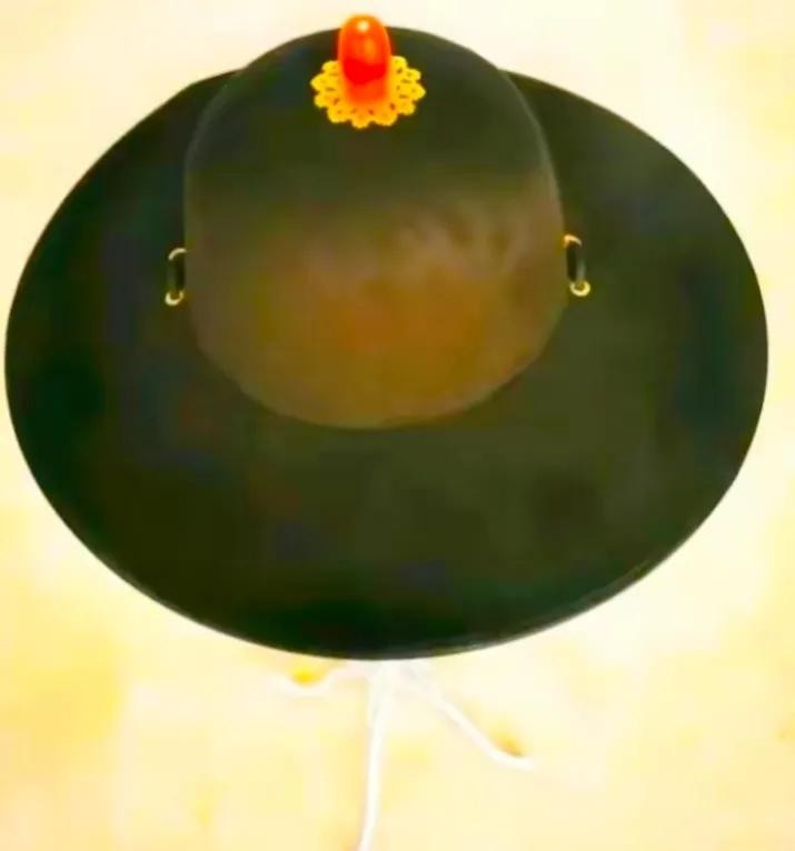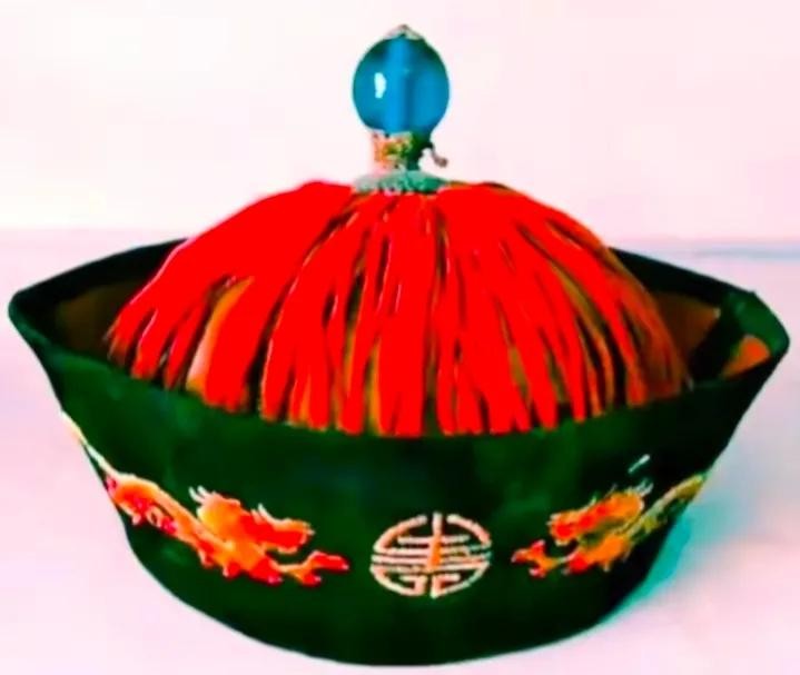 清朝官帽再次变成圆形的帽檐,并且在帽顶上镶嵌宝石,同时加上顶戴花翎。帽子款式是一样的,区别就是顶上的宝石,看宝石就能区分官员级别。一品用红宝石,二品用珊瑚,三品用蓝宝石,四品用青金石,五品用水晶,六品用砗磲,七品用素金,八品用阴纹镂花金,九品用杨纹镂花金。
