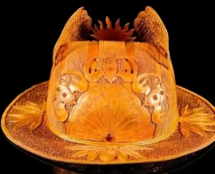 元朝官帽款式更像是个草帽,这是蒙古族常戴物,多些珠宝首饰的装点,而这些珠宝就是区分官员等级高低。最高级的是玉,而最低级的则是白银,其中有银鎏金龙纹帽等。出土于元朝头盔,是忽必烈时期征战南宋及金朝将军级别皮质作战头盔。头盔是元初将军作战头盔,主要组成部分包括甲胄主体,眉庇,护耳部件,面当,喉轮以及其它装饰性附件。