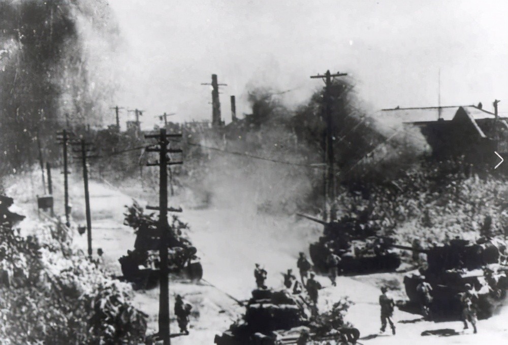 这种武装冲突的不断升级终于诱发了1950年6月25日朝鲜战争的全面爆发。仅仅三天之后汉城(今首尔)就被朝鲜人民军占领。汉城战役中南韩军伤亡高达4万多人,而朝鲜人民军仅有1000多人死亡、数千人受伤。在随后的江陵战役、弥阿里战役、汉江战役、水原战役中人民军势如破竹:7月20日朝鲜人民军占领大田;7月24日占领木浦;7月31日占领了晋州。
