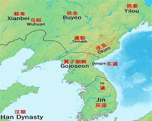 公元前57年到公元668年之间这段历史时期被今天的朝鲜和韩国称为三国时代,因为这一时期除了被朝、韩视为本国原始民族的高句丽之外朝鲜半岛上还同时存在着百济和新罗两国。事实上百济同样不是朝鲜半岛本土形成的政权——百济是扶余王尉仇台的后裔于东汉后期在带方一带建立的:扶余人从中国东北南下朝鲜半岛,征服了这里的土著部族马韩。