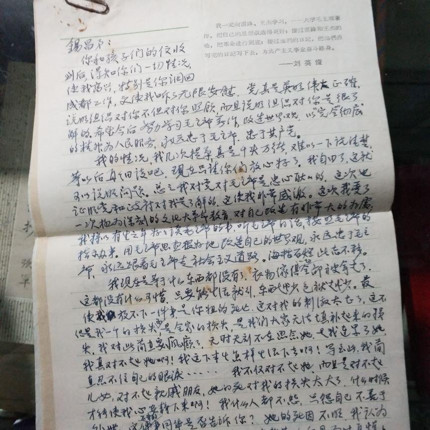 刘宗宽文革后期写给妻弟的一封信