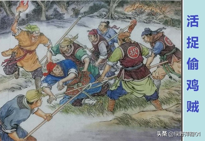 吃了别人的报晓公鸡,原本就丢了面子,还打了人,烧了店,无论如何都讲不过去了。祝家庄也不是好惹的,出动了庄勇,在黑夜混战中,活捉了偷鸡贼鼓上蚤时迁。