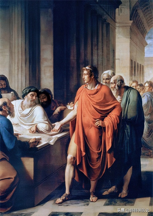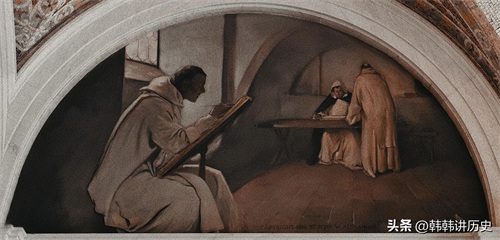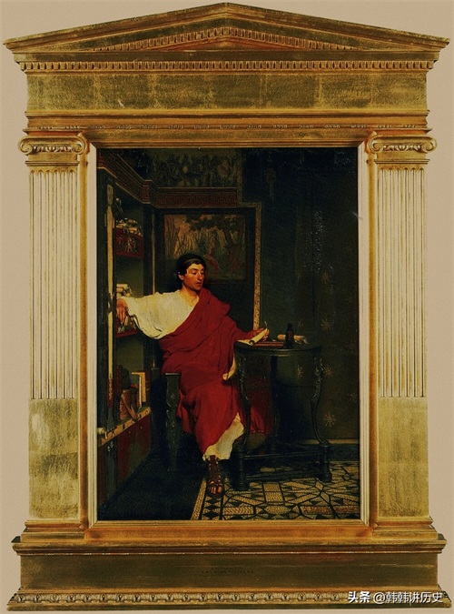 公元372年,瓦伦斯皇帝雇用了四名希腊抄写员和三名拉丁抄写员进行这一工作,这是这座图书馆最初建立时的情景。