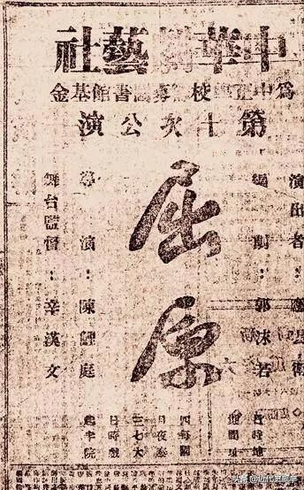 中华剧艺社的《屈原》演出广告