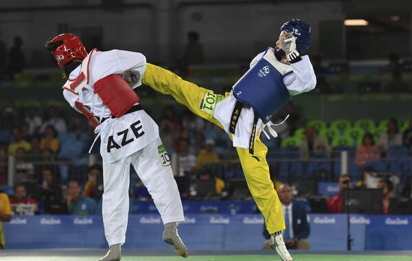 跆拳道起源于1500年前的韩国民间武术。由韩国的花郎道、中国的武术、日本的空手道融汇而成。公元688年新罗王国统一韩国,跆拳道得到大力推广。二战后逐渐在世界各国广泛开展。1973年起举办世界跆拳道锦标赛。跆拳道比赛采用三回合制,每个回合3分钟,回合之间休息1分钟。以拳的正面、踝关节以下部位进攻对手髋骨以上、锁骨以下被护具保护的躯干部位,以及以两耳为基准的头部和颈部的前面部分。以得分判定名次,得分多者名次列前。按体重分级别进行比赛。1992年成为奥运会比赛项目。
