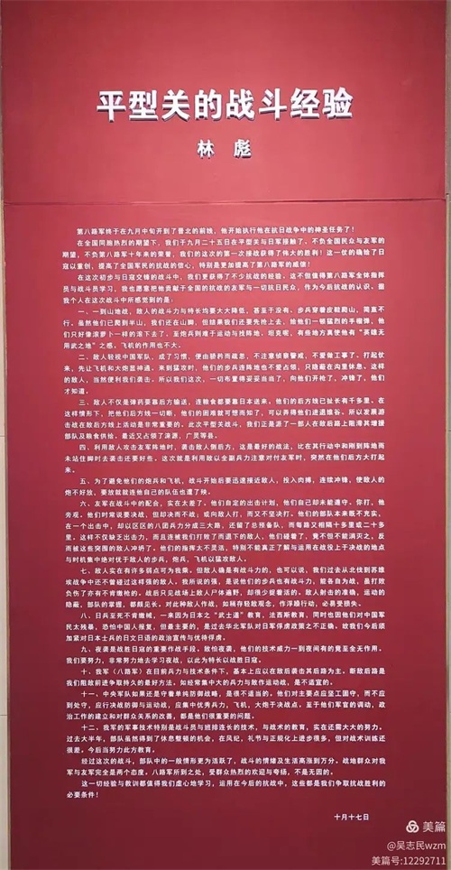 第三展厅,主要介绍平型关大捷的意义、影响和将帅对平型关大捷的评价等。