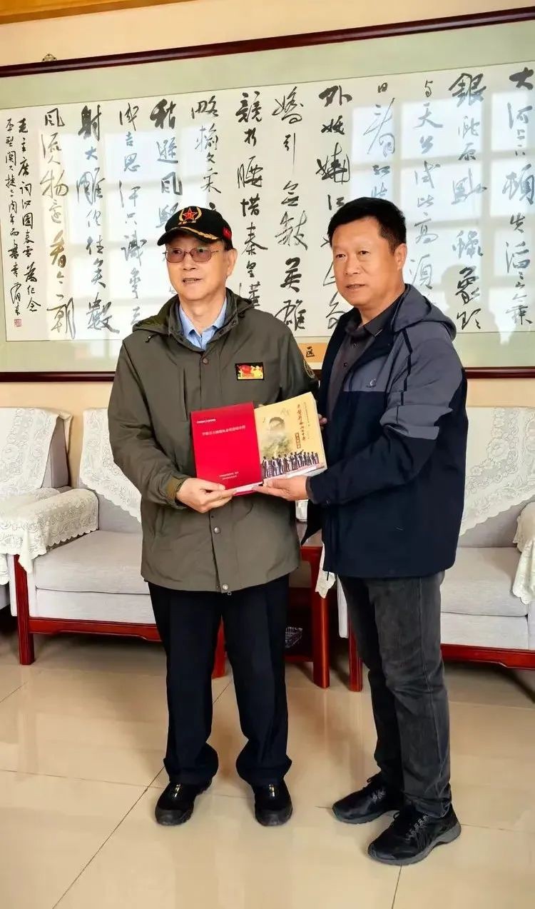 吴志民向纪念馆白卫疆副馆长捐赠有平型关大捷争夺老爷庙细节的《模范政委吴岱》一书