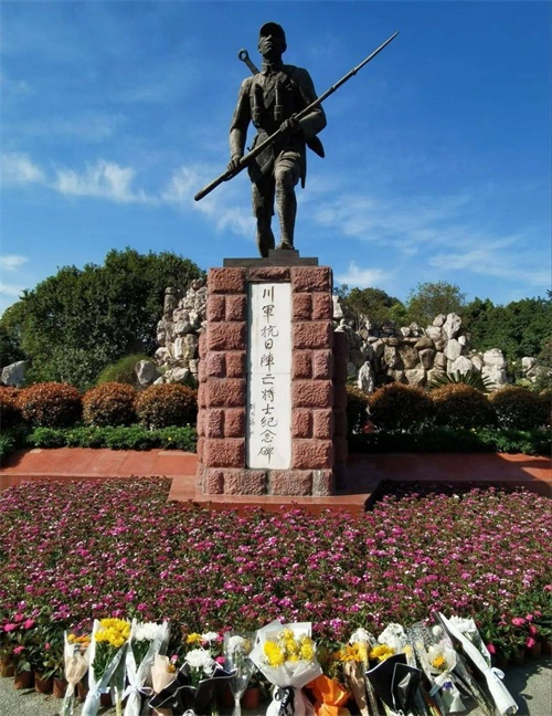 川军抗日阵亡将士纪念碑,又名无名英雄纪念碑,是为纪念在抗日战争中阵亡的64万 川军修建。纪念碑坐西南朝东北,由基座、碑体、塑像三部分组成,整体高约8米。纪念碑塑像造型是国民革命军人,身背大刀、斗笠、背包,身着短裤,扎绑腿,穿草鞋,手握步枪,跨步向前,即刻准备冲锋。1937年抗日战争全面爆发后,川军主动请缨抗战,当年9月5日在少城公园(现人民公园)召开了“四川各界民众欢送出川抗敌将士大会”,并从这里整装出发。七个集团军共40余万人立即奔赴前线杀敌。整个抗战期间,四川籍将士350余万人加入国民革命军等部队出川抗日,伤亡达64万之众,伤亡人数居当时各省之冠。