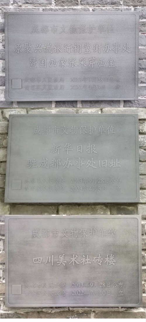 成都市祠堂街6座百年建筑中获成都市文物保护单位的3座文保牌