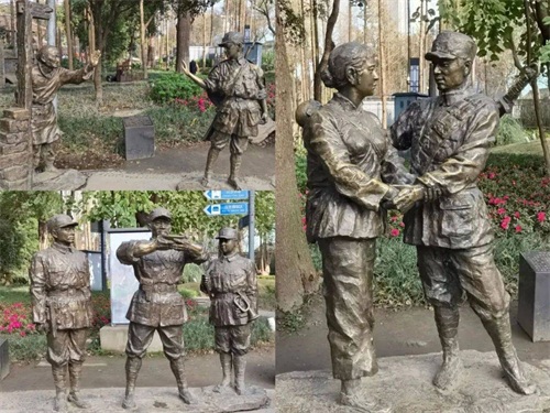 成都人民公园内川军出川抗日历史复原场景雕塑群