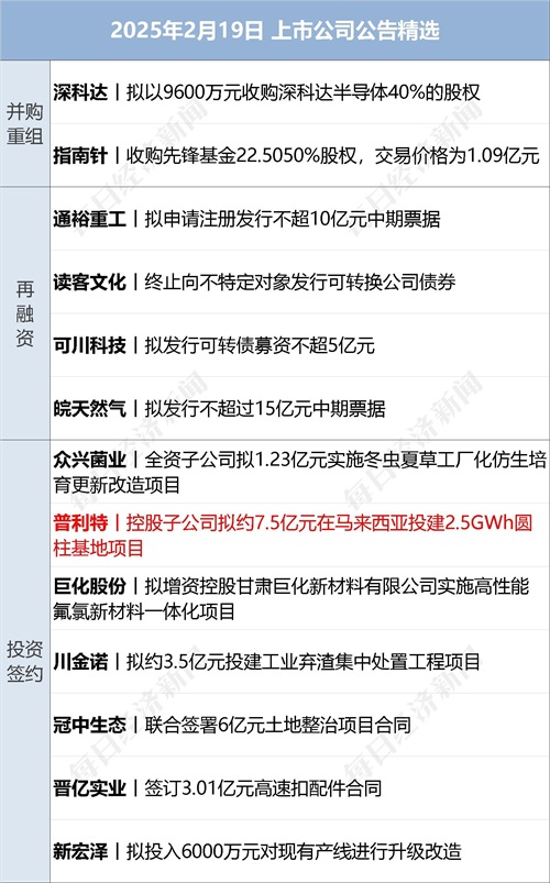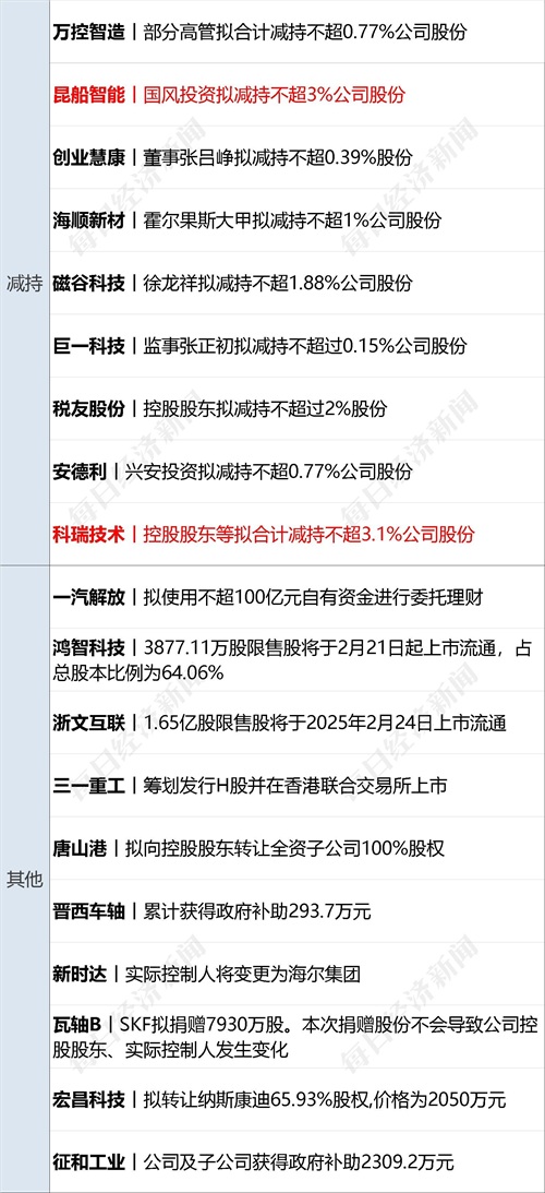 三一重工(SH600031,股价17.04元,市值1444亿元):2月18日,三一重工公告,公司正在筹划境外发行股份(H股)并在香港联合交易所有限公司上市事项,旨在推进公司的全球化战略,加强与境外资本市场的对接,并提升公司治理透明度和规范化水平。