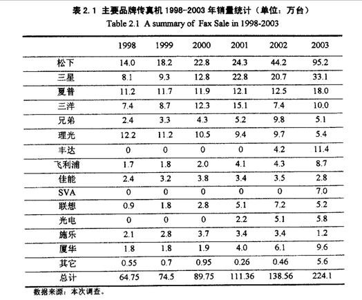中国市场:2002年销量318万台,上海理光市场份额第一。2003年、2004年总销量低于300万台,略有下降。