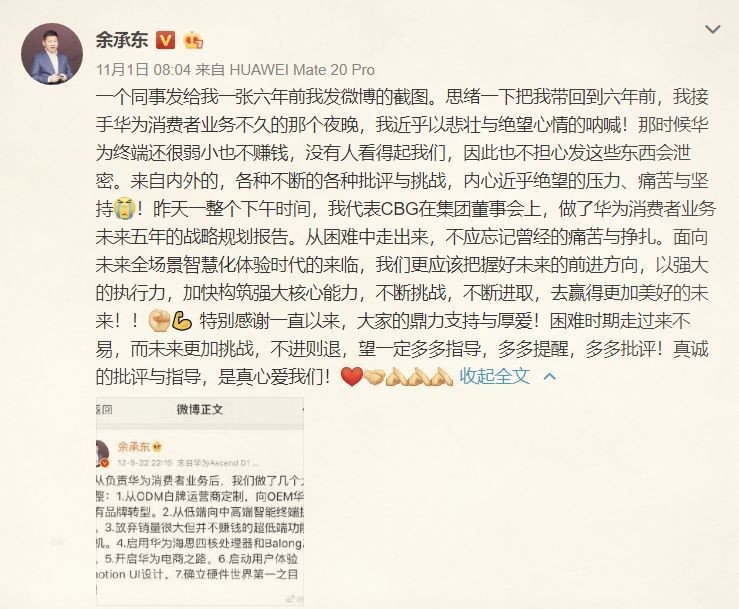 2018年4月:发布P20,全球首款内置独立NPU神经网络的处理器。余承东:全球手机全球手机厂商最终只会剩下包括华为在内的两到三家,并表示最晚明年华为可以做到全球市场第二,成为全球第一也是历史必然。