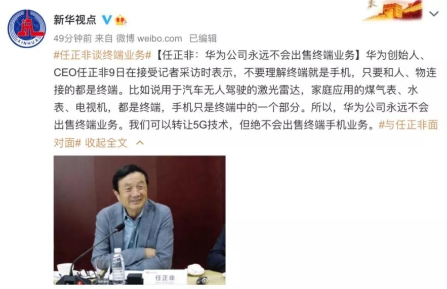 2021年2月9日:任正非表态,华为决定不会出售终端业务