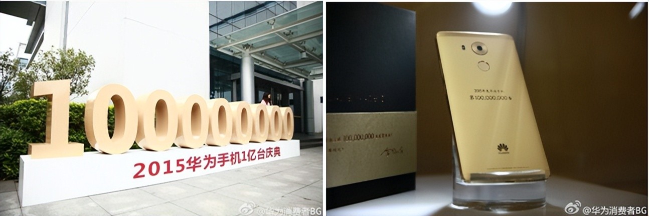 2015年12月22日:华为在松山湖基地举办2015华为手机1亿台庆典。华为2015第一亿台手机—Mate 8