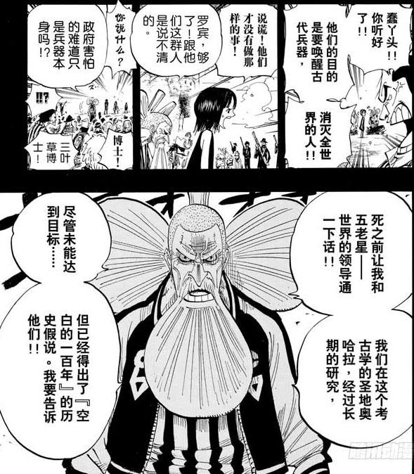 下面是三叶草博士和五老星的对话,也透漏了些许空白的100年的秘密