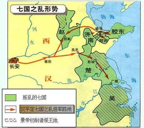 历史上,刘启是文景之治的重要舵手,史学家公认的圣明天子,无论是司马迁还是班固,都给于了文帝和景帝统治时期极高的历史评价。景帝继位后,延续了文帝“与民休息”的政策,从而使当时政治及社会经济得以继续发展。然而,就在景帝登基后仅仅三年,国家便由治入乱,发生了西汉历史上最大的一次叛乱--七国之乱。