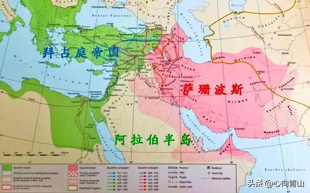 当阿拉伯人骑着骆驼从沙漠之中杀出之时,西方是拜占庭帝国,东方是波斯帝国,两大帝国都曾经是地跨亚欧非的大帝国,二者在地中海东岸的争霸战为阿拉伯人的崛起提供了绝佳的时机。