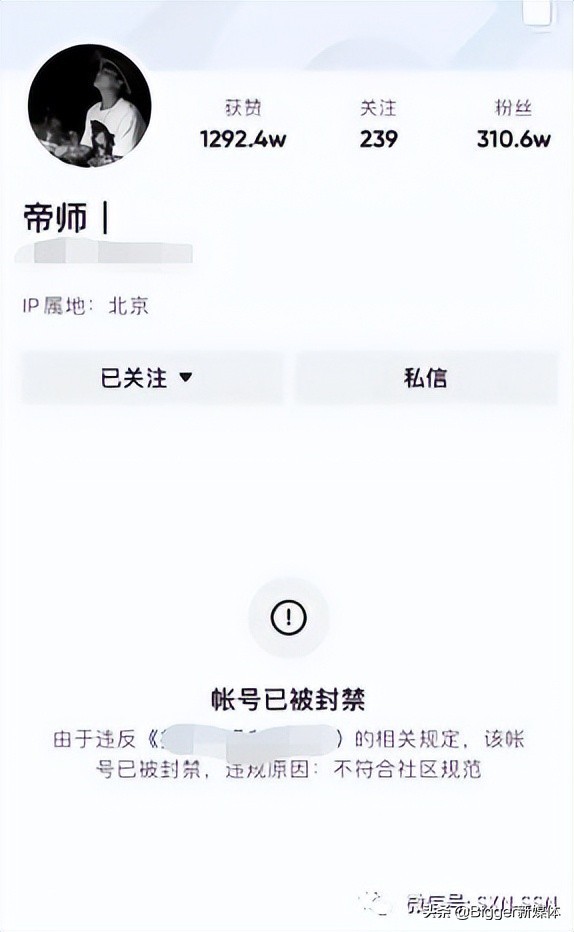 现如今,再去看帝师300多万粉丝的抖音账号,已经被平台封禁。