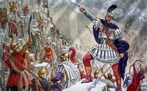 亚历山大大帝随即率军冲上去,一手持盾,一手持长矛,冲向敌人,矛刺连着斩杀了几个敌人。敌人不敢靠近他,只能远远地射箭扔石头。大批战士蜂拥而来,推罗城被攻克了。