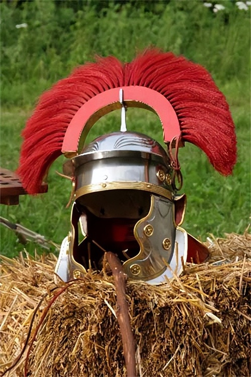 百夫长的头盔可能是有史以来最具标志性的军事装备之一。头盔被称为盔瓣,顶部有一个横向的冠。徽章通常是银色的,并装饰着染发或羽毛(通常是鸵鸟或孔雀)。