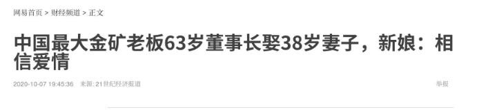 《中国最大金矿老板63岁董事长娶38岁妻子,新娘:相信爱情》21世纪经济报道