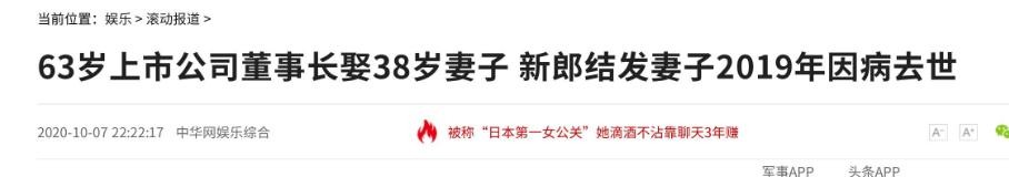 《63岁上市公司董事长娶38岁妻子新郎结发妻子2019年因病去世》中华网娱乐综合