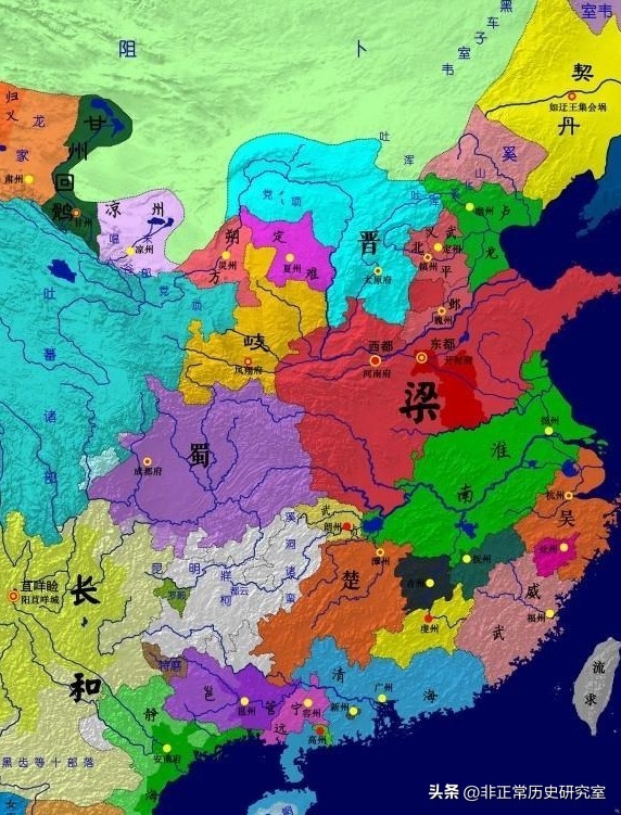 而随着后梁丧失河北之地,朱友贞在朝廷的威望骤然暴跌,也让后梁实控的藩镇以及表面臣服于后梁的藩镇态度开始暧昧起来,岭南节度使刘䶮公然僭号称帝,建立南汉,地处湖南的马殷和南平的高季兴鼠首两端,暗中联络李存勖等等,而此时深陷梁晋争霸泥潭的朱友贞已经无暇顾及这些,只能听之任之。