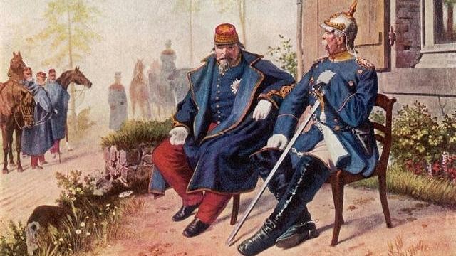 普鲁士首相奥托·俾斯麦与被俘的法国皇帝拿破仑三世