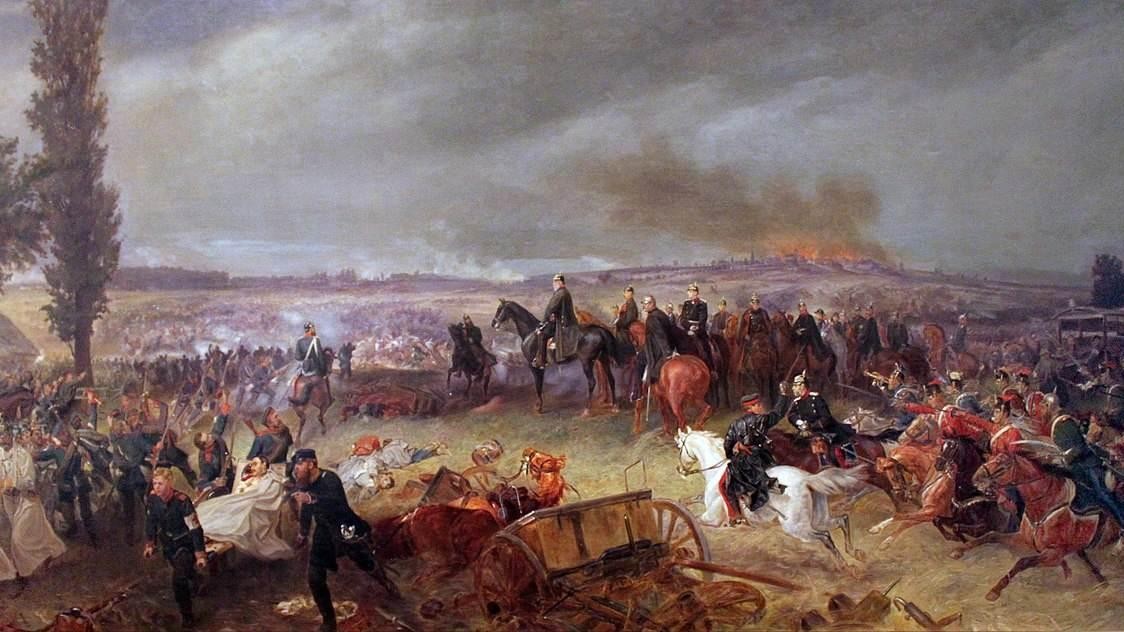 1870年,普鲁士首相奥托·俾斯麦通过外交策略(埃姆斯密电)成功诱导法国皇帝拿破仑三世主动宣战挑起普法战争(1870至1871年)。然而,同仇敌忾的北德意志邦联在普鲁士国王兼总司令威廉一世的领导下不仅击退了入侵的法军,更是反攻至法国境内。在决定性的色当战役中,普鲁士元帅赫尔穆特·毛奇率领20万大军不仅大败法国皇帝拿破仑三世亲率的12万军队,更是将拿破仑三世本人俘虏,间接导致法兰西第二帝国的灭亡以及南德意志诸邦的归顺,标志着德意志第二帝国的前身普鲁士王国就此瓦解和取代了法兰西第一帝国的西欧霸权。