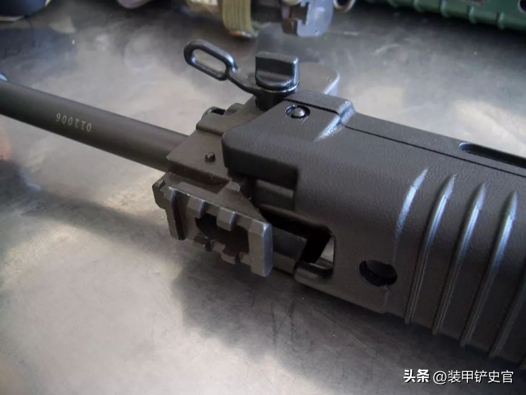 ■早期的T65步枪取消了提把,使用与M16相同的20发直弹匣。