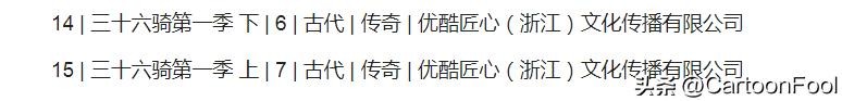 《三十六骑》动画在2021年7月全国重点网络影视剧拍摄规划登记备案情况中的网络动画版块就由优酷备案了,分为上下两个篇章,共计13集,